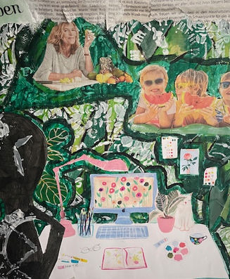 Alle meine Kunstwerke haben ihre selbst erstellte eigene Bilderrahmen aus regionalen Zeitungen erstellt.